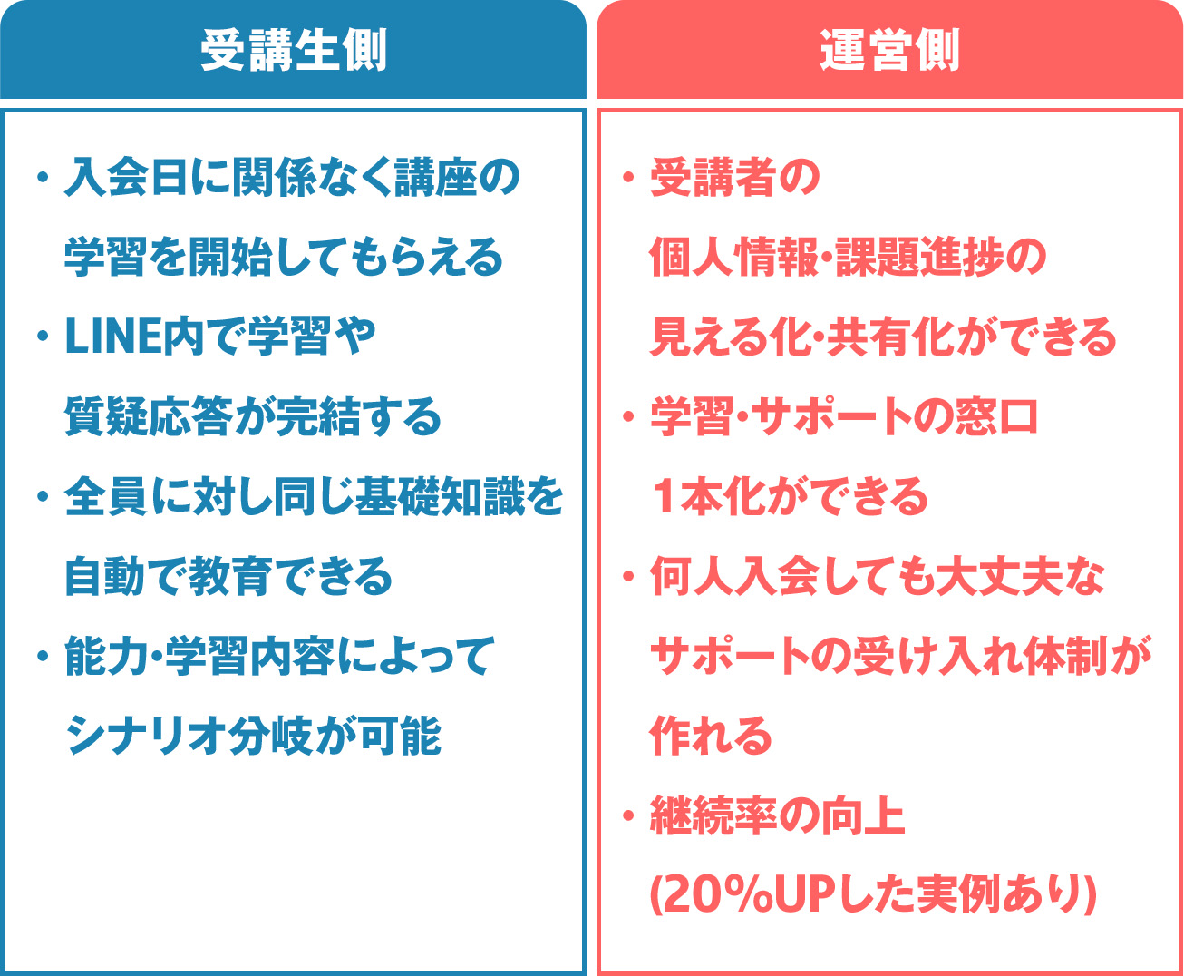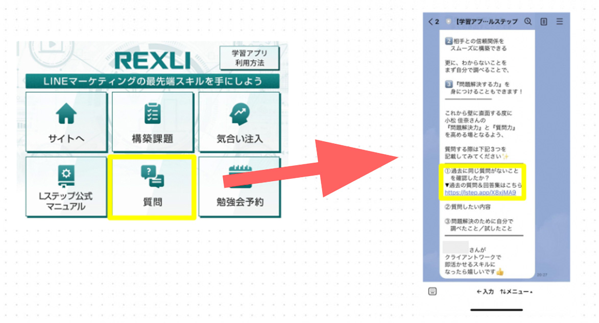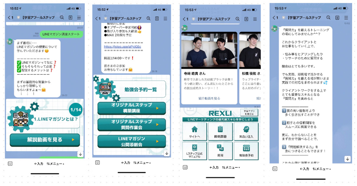 例えば弊社講座で使っているLINEの学習アプリでは、LINEから学習課題や講座のコンテンツを確認できるようにしたり、