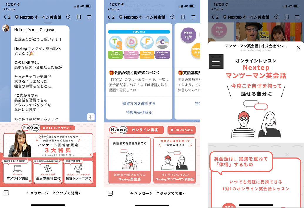 例えば弊社講座で使っているLINEの学習アプリでは、LINEから学習課題や講座のコンテンツを確認できるようにしたり、