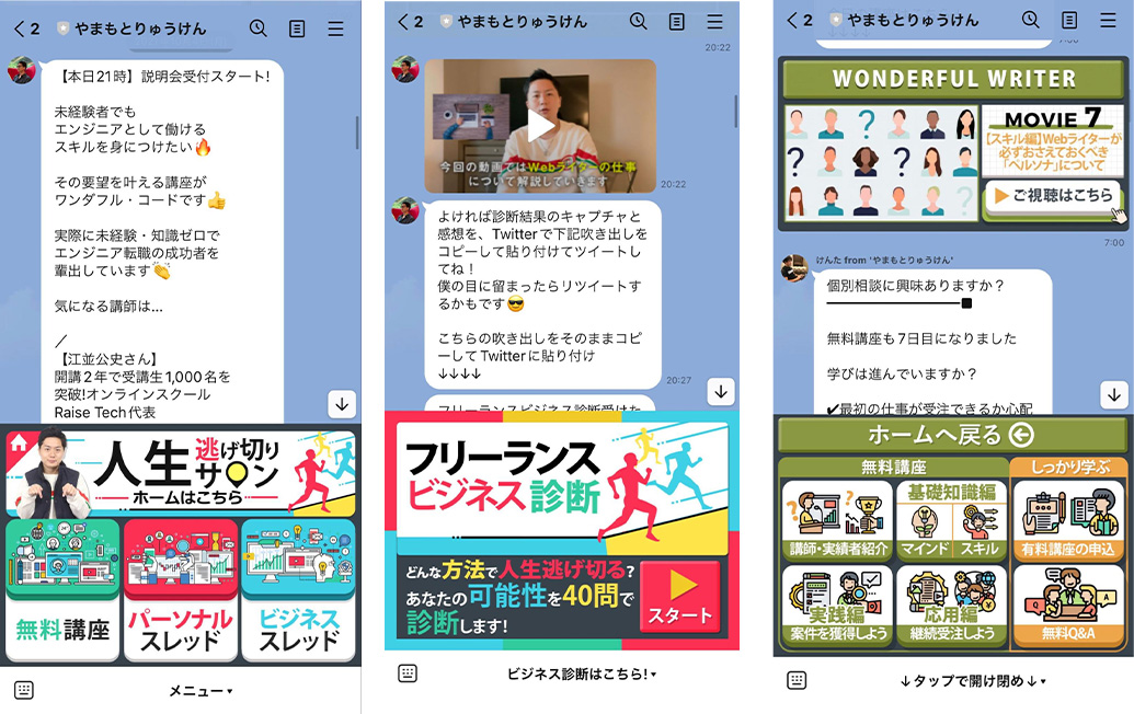 - •オンラインサロンの各スレッドをリッチメニューに集約し、LINE内でサロンが完結する仕組みに!